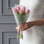 Букет из пяти тюльпанов в матовой упаковке выглядит очень стильно и элегантно.
